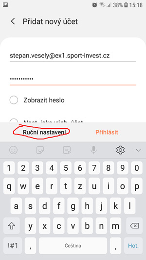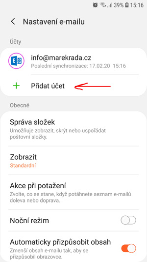 nastavení Exchange účtu na ANDROID telefonu