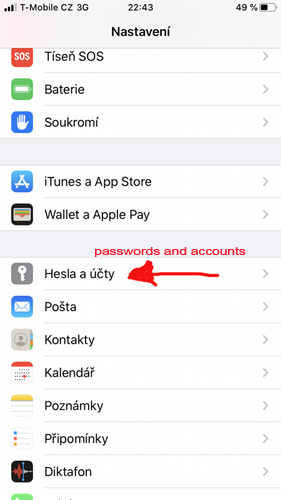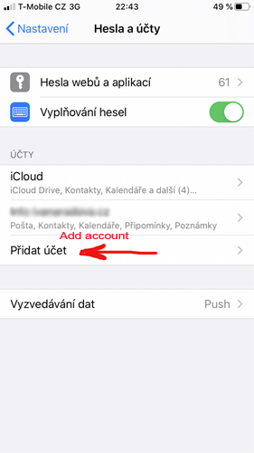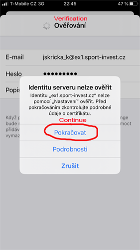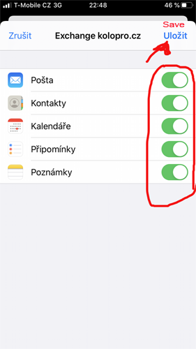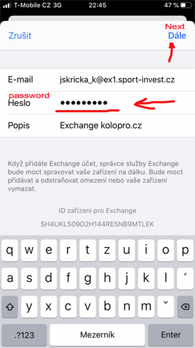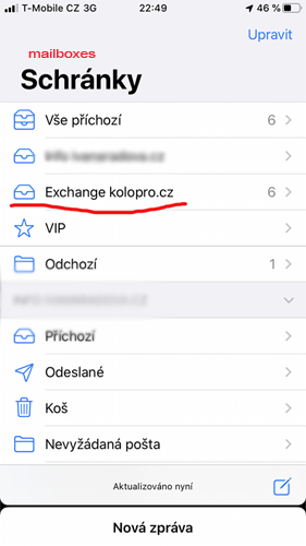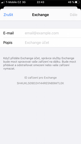 Postup nastavení Exchange účtu na iOS telefonu