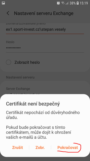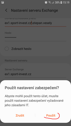 nastavení Exchange účtu na ANDROID telefonu