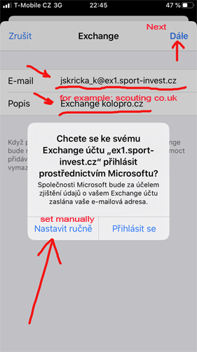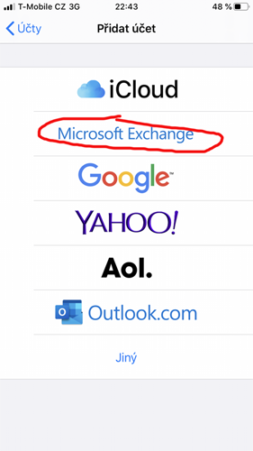 Postup nastavení Exchange účtu na iOS telefonu